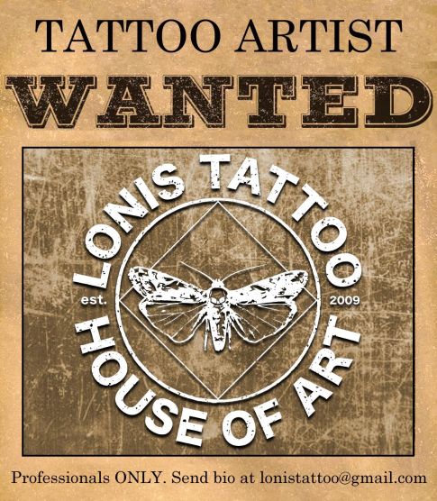 TATTOO ARTIST WANTED AT LONIS TATTOO STUDIO Lonis Tattoo Studio is looking for an experienced tattoo artist. Send us your portfolio at This email address is being protected from spambots. You need JavaScript enabled to view it.. Continue reading